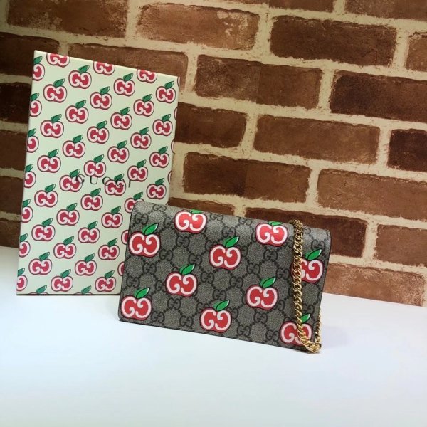 Portefeuille de cartes à chaîne en gros de Gucci avec imprimé GG Apple