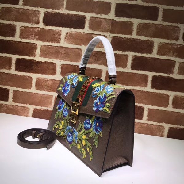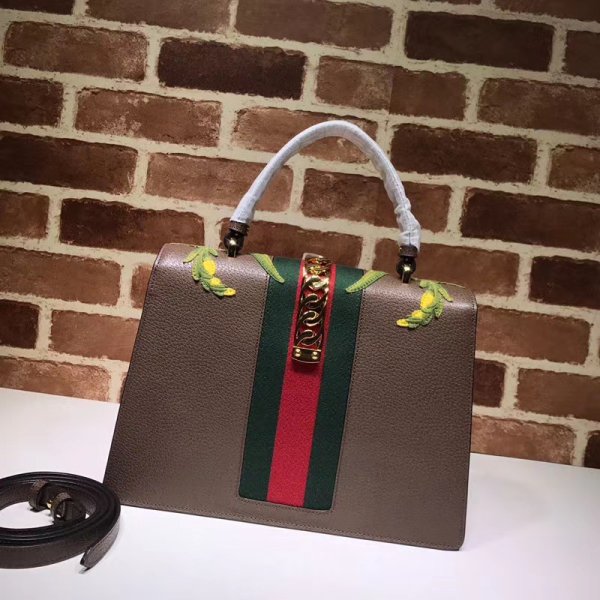 replica gucci sylvie leather top handle bag black 431665