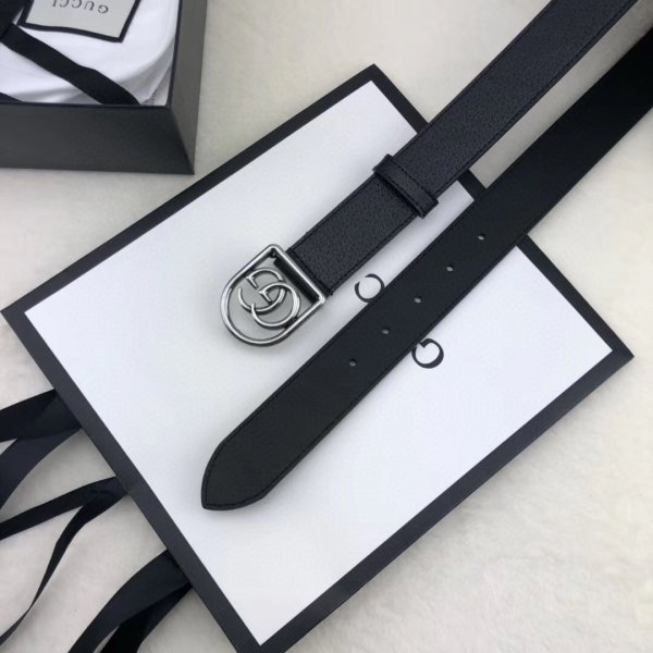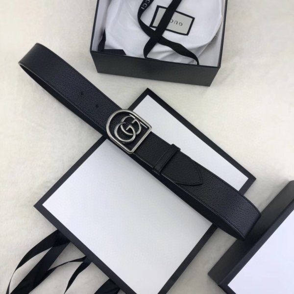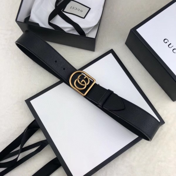 Gucci Gucci Double G Replique de ceinture en cuir noir