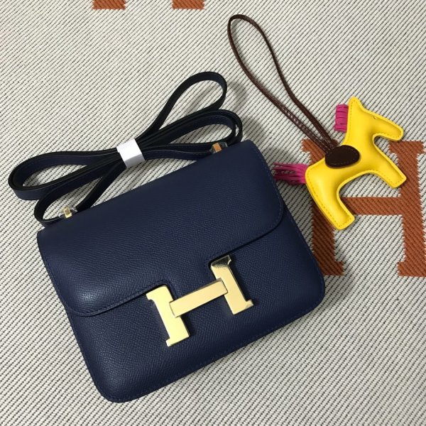 Hermes Constance Bag 18 cm Epsom en cuir bleu foncé