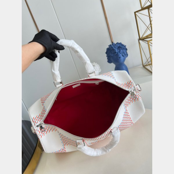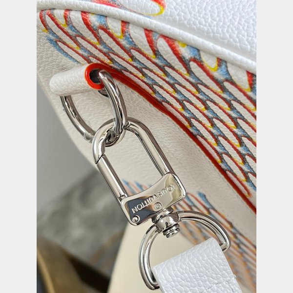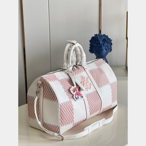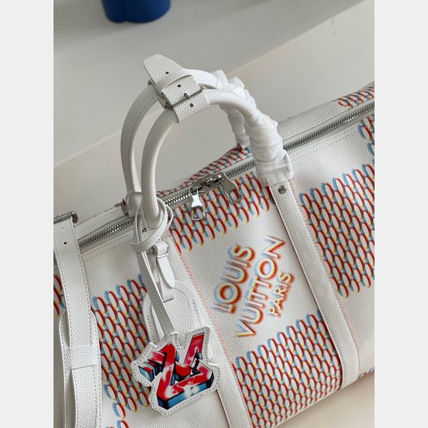 The classic Keepall gets a street- Mise à jour intelligente avec la décoration de pulvérisation Damier sur la vache blanche. Le motif de damier historique de Louis Vuitton Replica est réinterprété avec un effet pulvérisé en 3D, accentué d’une étiquette de signature «LV» démesurée dans un style d’art graffiti. Un sac tendance qui fait une déclaration élégante – idéale pour les fans de Damier modernes.