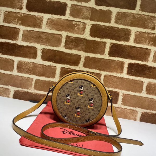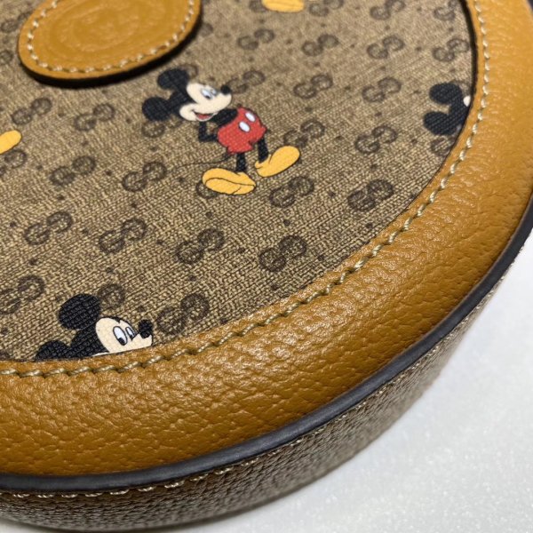 1Mni Gg Supreme Canvas avec Mickey Mouse et cuir marron clair Trimantistique Taguement doré-talware