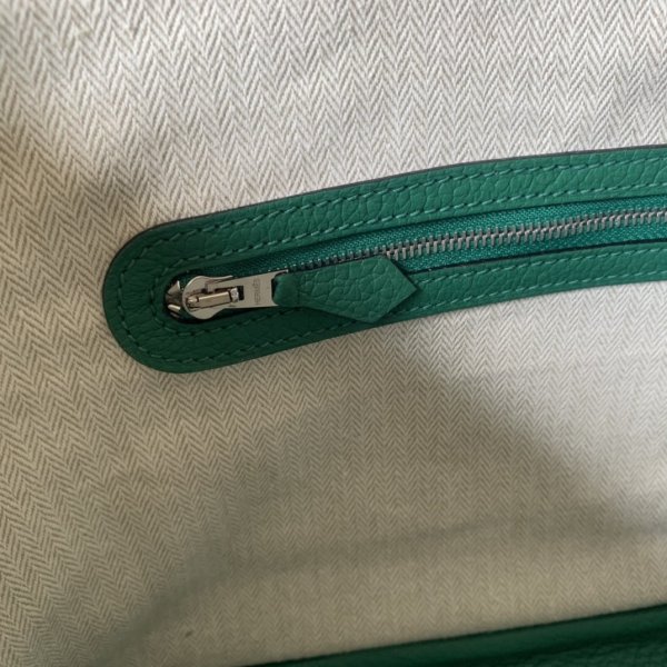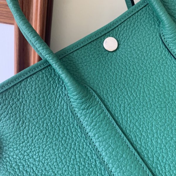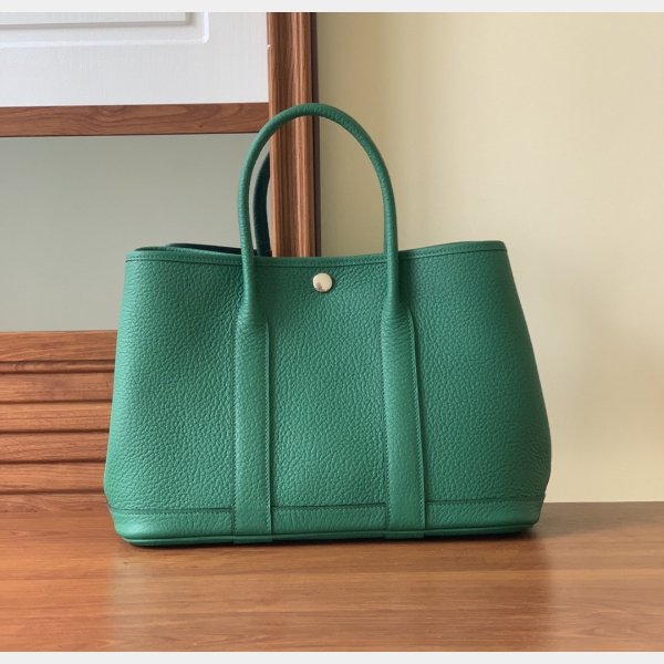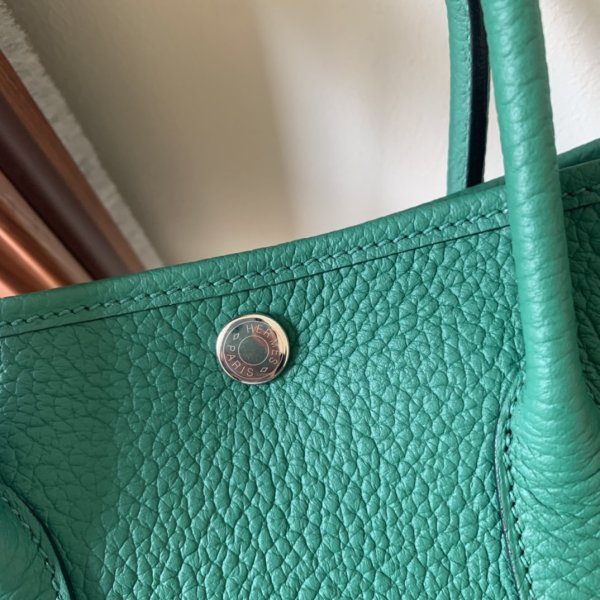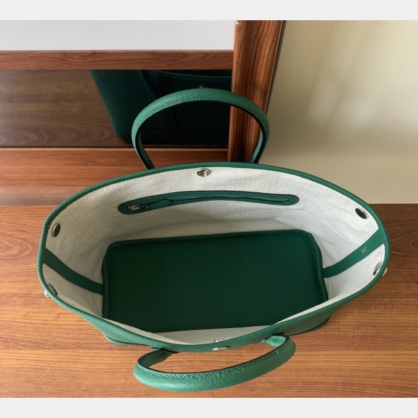 La réplique du jardin Hermes est un simple sac fourre-tout avec un seul compartiment ouvert et une poche zippée interne, fixée par un seul bouton-instant.