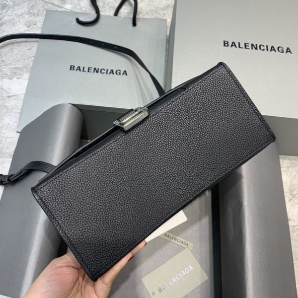 Balenciaga, le sac de sablier noir lourde de cette saison en noir], la forme courbe emblématique unique est très reconnaissable, elle rend les yeux brillants en un coup d’œil, il est super cool et l’apparence présente une forme ronde et demie de lune. Anneau de traction en forme de B en métal